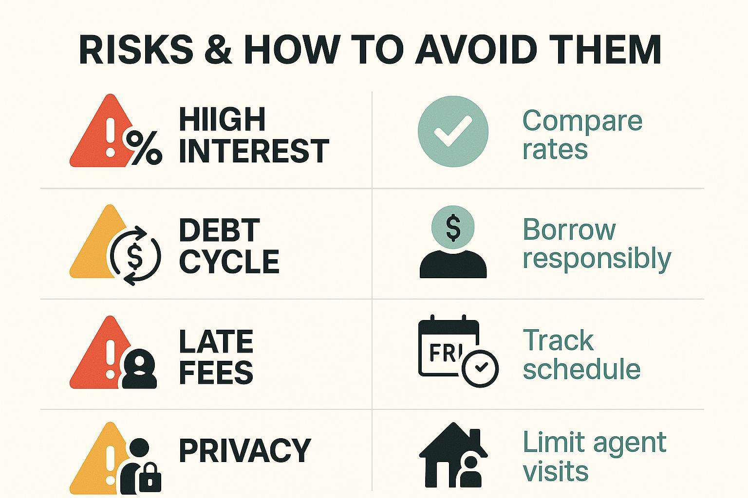 Flexible repayment schedules (weekly/monthly) | Risk of falling into a debt cycle |